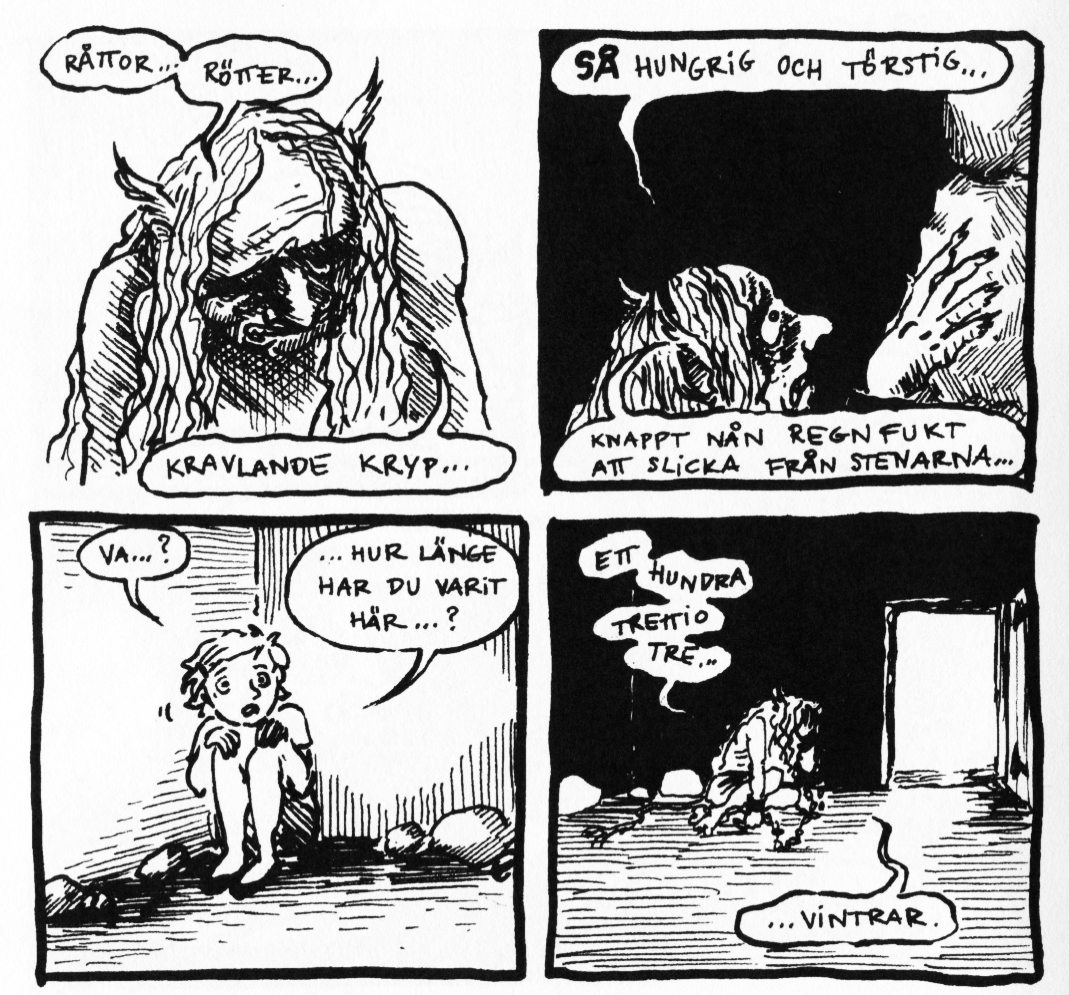 I sitt förord skriver Jenny Berggrund att hon tecknade hela serien på bara tre dygn. Det är imponerade, särskilt för en tämligen långsam tecknare som jag, men jag önskar att hon hade lagt ner lite mer tid på bilderna. De funkar fint som bärare av berättelsen och ibland är det riktigt stämningsfullt, men på vissa sidor sticker krafsigheten i ögonen.
