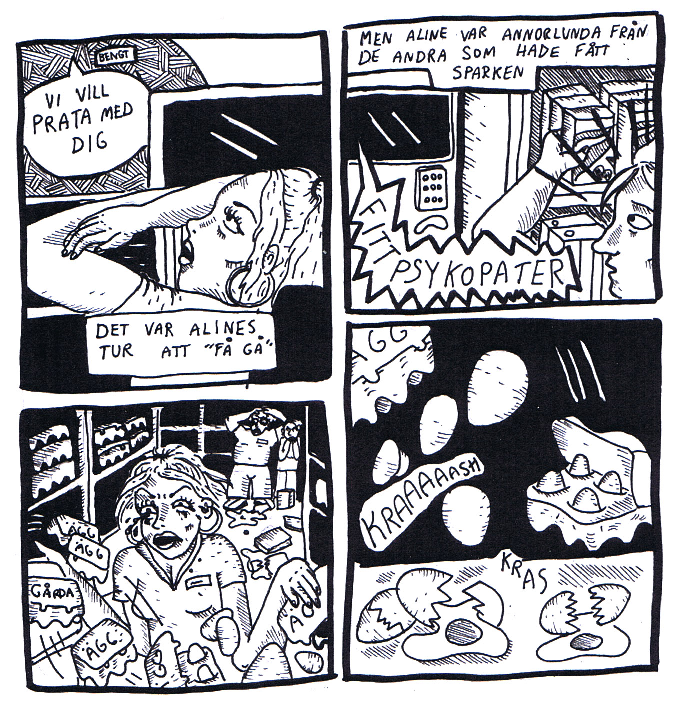 Serien med överlägset mest substans storymässigt är däremot Aline av Matilda Josephson. Liksom den kaxiga före detta kollegan i närbutiken lämnat bestående intryck hos skaparen, lämnar serien det hos mig – påminnandes därmed om att det är stark story som är a och o i serieskapandets hantverk. Med mer övning på teckningsfronten kan det bära en bra bit för Matilda Josephsons del.