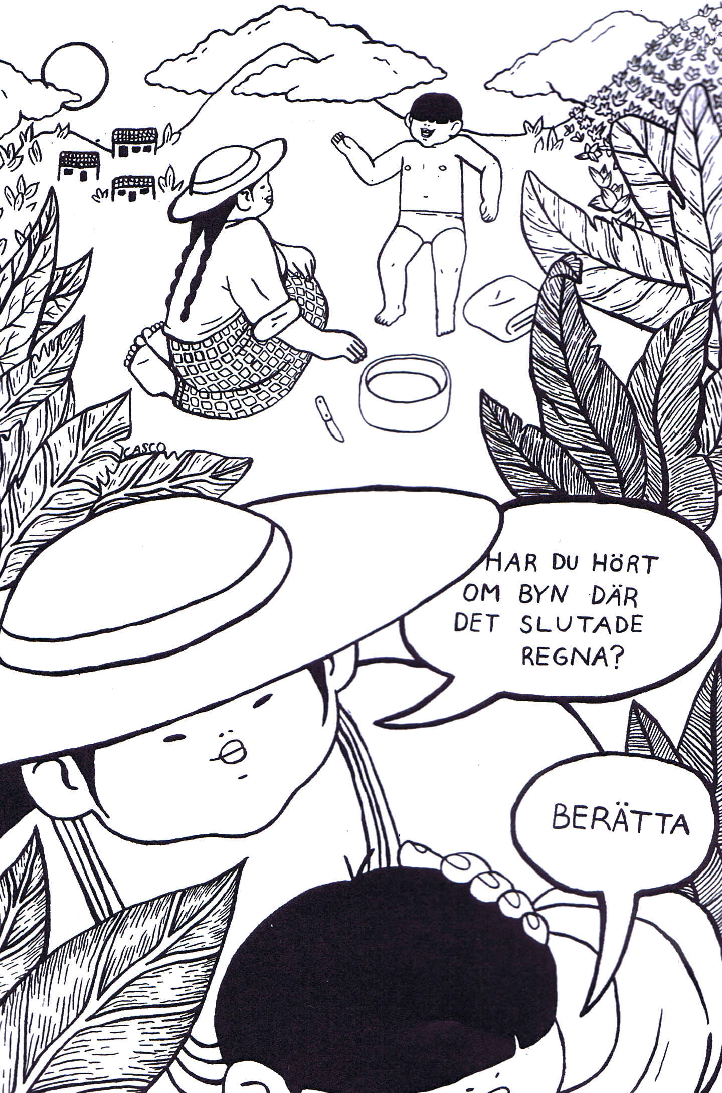 Några större estetiska eller berättarmässiga innovationer bjuder nuvarande Serieettan inte på – än så länge. Men den intressantaste och kanske även mest originella tecknarstilen tillhör Bianca Casco, vars inledande Regnbyn (bild längst upp) lyckas på ett fungerande sätt frigöra sig från rutindelningen, och låter ögat vila i en behaglig balans mellan svärta, tomma ytor och skafferingar.