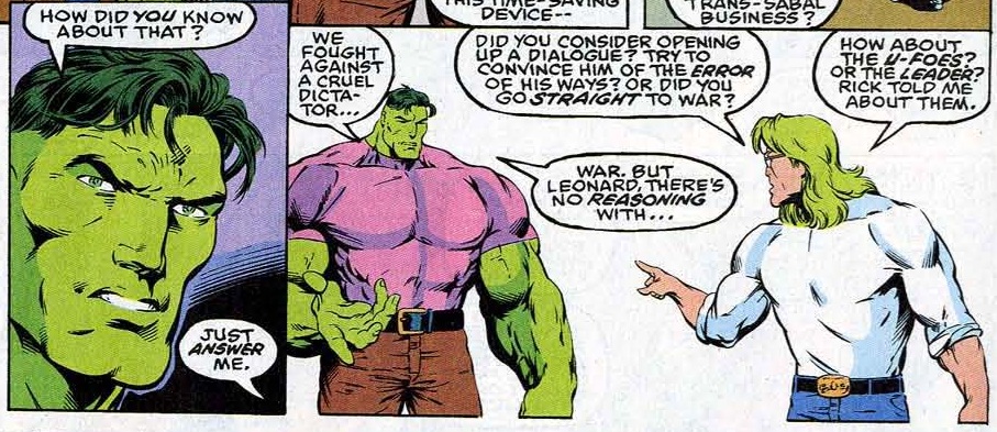 Inte ens när Hulk och resten av Pantheon konfronterade sin gamle ärkefiende Leader var det entydigt vem som handlade moraliskt föredömligt. Historien Ghost of the Past som inleddes i Incredible Hulk nummer 397 (september 1992) och kulminerade i det dubbelt så tjocka nummer 400, avslöjade den plan Leader hade när han lät en gammabomb detonera mer än fyra år tidigare, i Incredible Hulk nummer 345 (juli 1988).